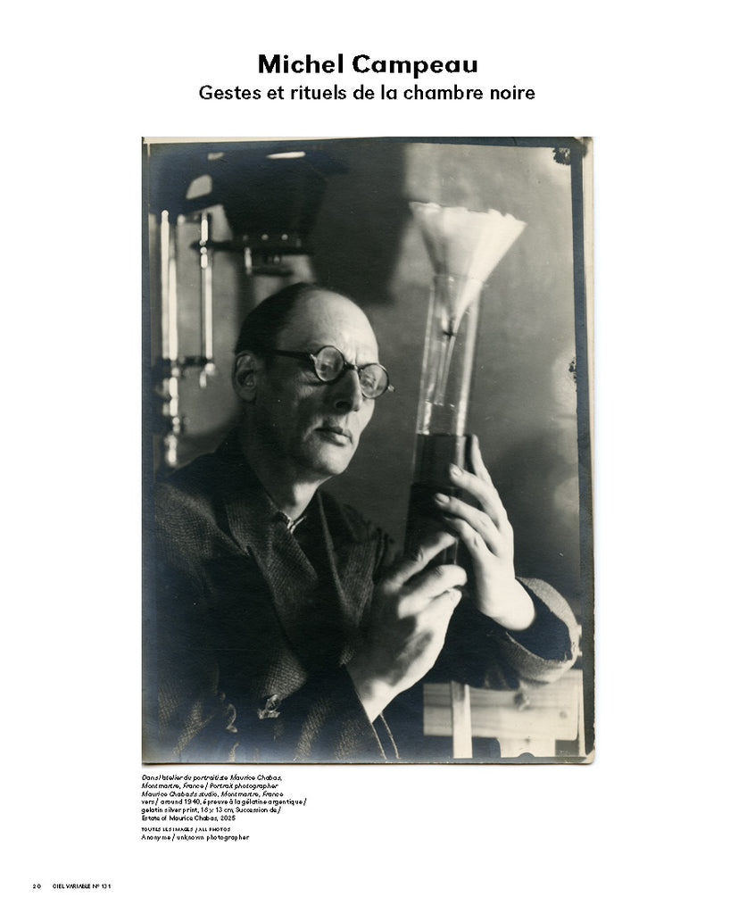 Mona Hakim, « Michel Campeau, Gestes et rituels de la chambre noire – Une typologie affective des savoir-faire photographiques », Ciel variable, nº 131, « Collectionner », Montréal, 2026, p. 20-29.